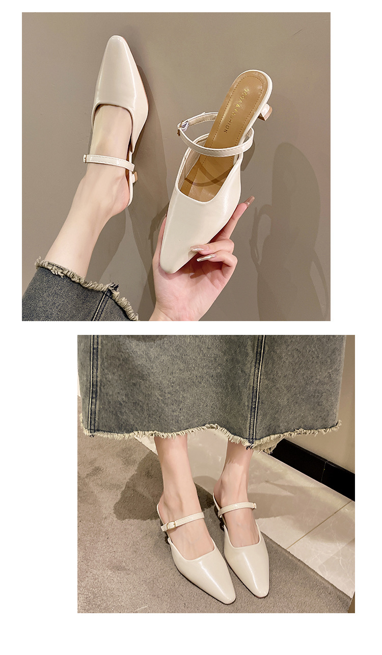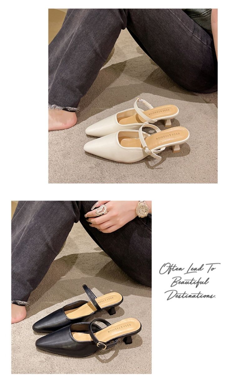 足の甲を優しく包む透明ストラップが上品さと安定感を両立し、脱ぎ履きしやすいバックレスデザインで快適な履き心地を実現しました。