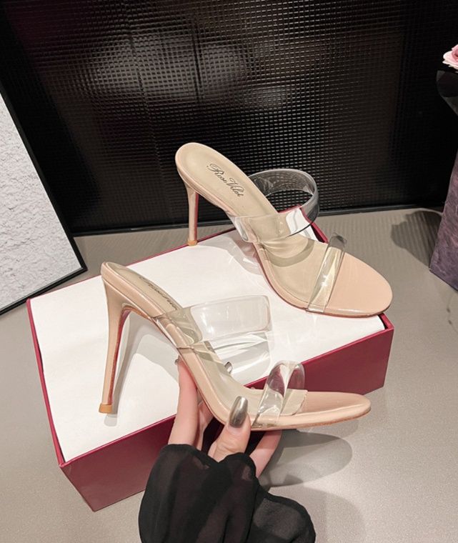 透明な帯が足元を華奢に見せる洗練されたサンダルです。